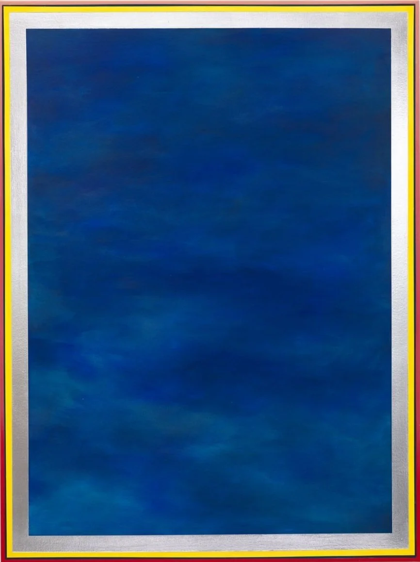 Acrylic and silver leaf on canvas, 90 x 120cm.
